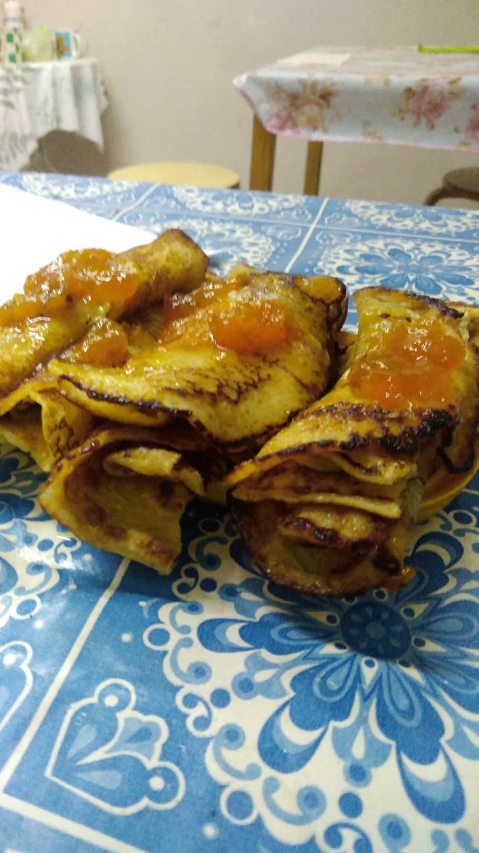 Сковороду смажьте кусочком сала или растительным маслом. Если используете антипригарную сковородку, тогда ее ничем смазывать не нужно. Мы кушали блины с абрикосовым вареньем,если интересно как готовить нажимайте сюда 👆Подписаться, так вы не пропустите новые статьи!❣️