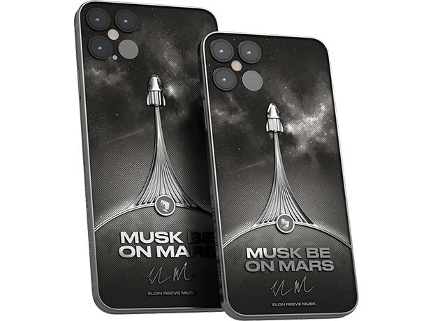 Производитель люксовых устройств Caviar представил очередные занятные смартфоны, посвященные Космосу и Илону Маску. Подписывайтесь на наш YouTube-канал! iPhone 12 Pro/12 Pro Max Musk be on Mars, не сложно догадаться, посвящаются Илону Маску и его проекту SpaceX. Вместе с этими смартфонами также выпущены кроссовки Nike Air Force 1 Musk be on Mars и лимитированные версии смартфонов iPhone 12 Pro/12 Pro Max Soyuz. Специальные издания iPhone 12 Pro/12 Pro Max Musk be on Mars имеют соответствующую надпись на тыльной панели, имя Илон Рив Маск, подпись руководителя Tesla и SpaceX, а также взлетающую ракету SpaceX Dragon. Интересно, что Caviar добавила на заднюю панель эксклюзивных смартфонов небольшие фрагменты настоящего космического корабля Dragon. Корпус девайсов выполнен из титана. Изображение нанесено техникой лазерной гравировки. У каждого смартфона iPhone 12 Pro/12 Pro Max Musk be on Mars есть свой номер. Всего их 19. Стоимость iPhone 12 Pro Musk be on Mars стартует от $4990 за 128 ГБ,