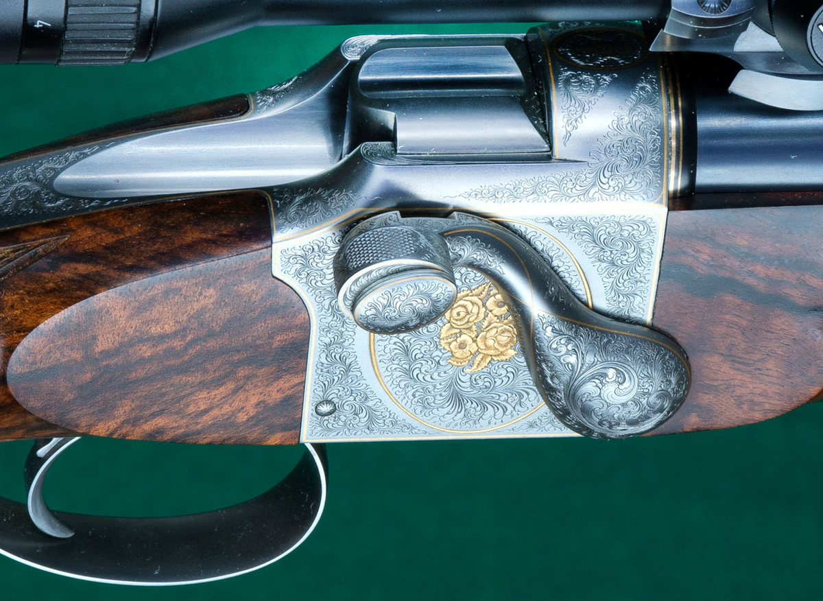 Он использует скрытый курок и V-образную боевую пружину, а затвор приводится в движение боковым рычагом. У него очень эффективный предохранитель, а боевые упоры чрезвычайно прочные, и они не могут выйти из строя. Еще одно преимущество заключается в том, что все элементы конструкции скрыты как при открытом, так и при закрытом затворе, а также настолько компактны, что их очень удобно использовать на спортивных винтовках.