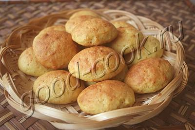 Противень застелить бумагой для выпечки и выложить тесто небольшими горками на расстоянии друг от друга. Выкладывать можно при помощи двух столовых ложек - одной ложкой зачёрпывать тесто, а другой снимать его на противень. Или при помощи плотного п/э пакета - тесто переложить в пакет, срезать у него уголок и выдавливать тесто небольшими порциями на противень.