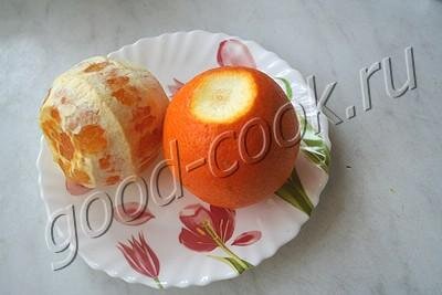 Апельсины тщательно вымыть. С одного апельсина счистить кожуру. Второй апельсин не чистить и обварить кипятком. Желательно, чтобы он полежал минут 5 в кипятке.