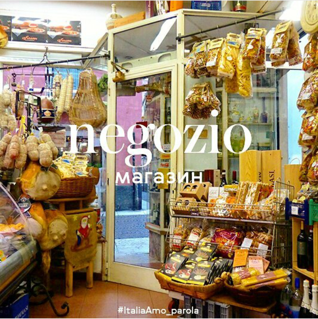 Что за слово вообще такое negozio? Как известно, люди любят больше отдыхать, чем работать, и в итальянском языке есть такое слово "ozio" - праздность, безделье. А в заведении, которому нужно было придумать слово, необходимо было работать, поэтому.. приставили так называемую приставку neg (есть ещё в итальянском глагол negare - отрицать), и получилось - NegOzio, т.е. "не безделье". А в русскому языке почему мы помещение, где продают товары, называем "магазин"? Потому что одним из родоначальников международной торговли является Ближний Восток, и "склад" на арабском - "mahzan", с развитием торговли пришло и слово. В итальянском тоже есть слово "magazzino", но оно обозначает "очень большой магазин, магазин-склад". Так называют магазины Zara, H&M.