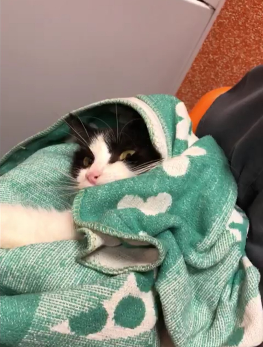 Сегодня Муру забрали из стационара. Кошечке гораздо лучше, температуры нет. Металлический штифт в лапке остался, надо будет снимать через 2 месяца.