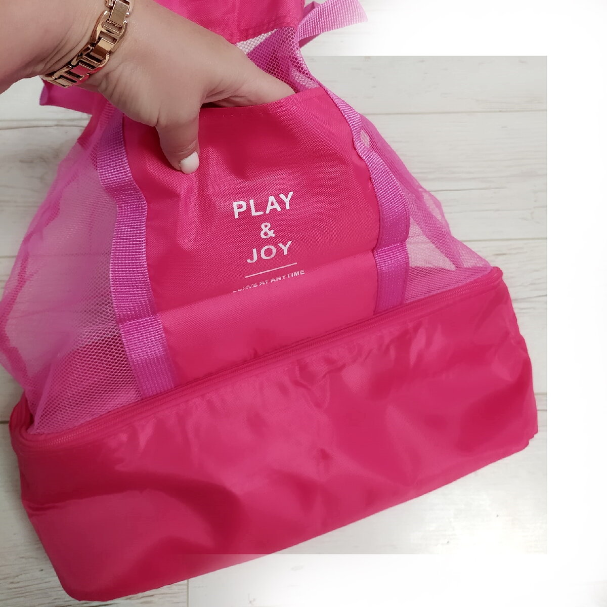Верхнее отделение из мелкой сетки, ручки пристрочены полностью.