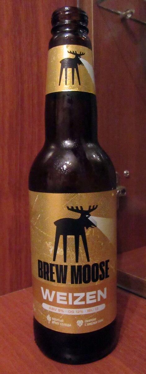Итак, Brew Moose Weizen. ТТХ 12.0-5.0. IBU 13. Производитель (Внезапно :-) !) ООО «Пивоваренная компания «Балтика», г.