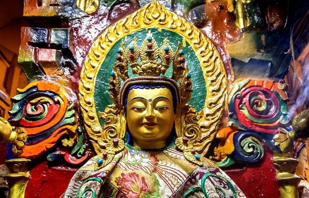 Сейчас, когда мы с вами, Друзья, живем на Земле, будда Майтрейя живет в небесах Ту́шита – это райские земли, где живут боги в бесконечной радости и счастье. Поэтому когда мы обращаемся к Майтрейе – он делится с нами состоянием радости и счастья.