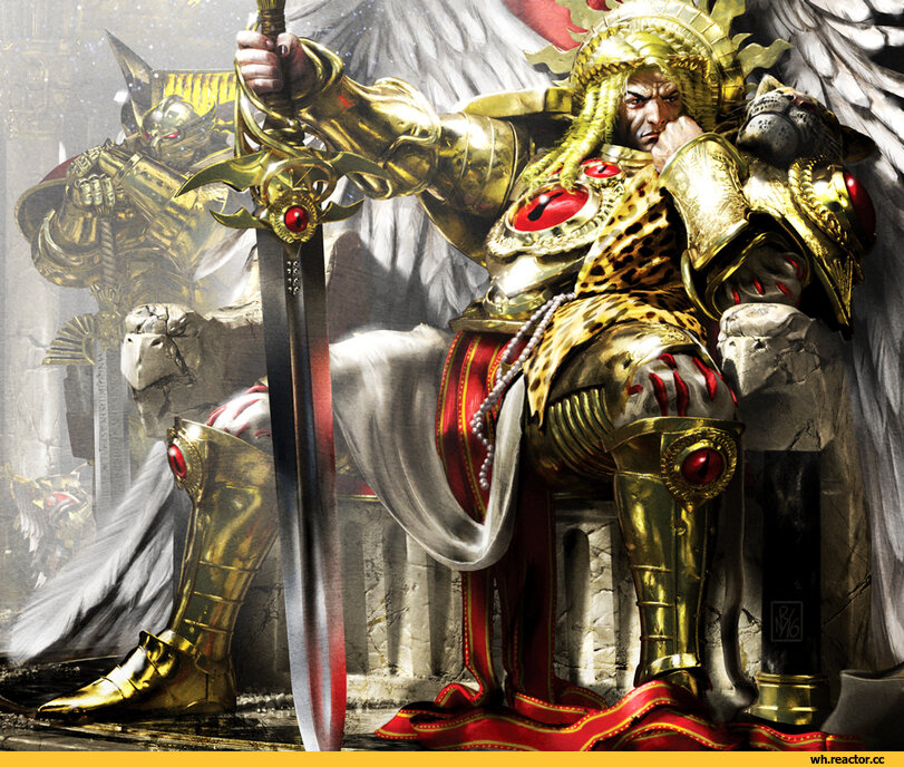 Попал на планету Баал Секундус, причём из-за прорыва варпа, забросившего его капсулу в такие дали, обрёл перистые крылья. Подобран племенем дикарей, известных как «чистокровные». Быстро проявил сверхчеловеческие качества и психические таланты (включая талант к предсказанию будущего). Предвидел появление Императора и радостно присягнул ему при его прибытии. Принял командование IX легионом Кровавыми Ангелами (к началу Ереси Хоруса легион насчитывал около 120 тыс. астартес). Сражался на стороне Императора во время Ереси Хоруса, участвовал в обороне Терры. Погиб на боевой барже Хоруса, от рук Луперкаля, причём смерть примарха имела огромное воздействие на Кровавых Ангелов, приведя к появлению феномена "Чёрного Гнева", когда десантники начинают проживать последние минуты жизни Сангвиния, и получают толики его силы. Таких десантников направляют в Роты Смерти, где они смогут почётно умереть в бою, пока гнев полностью не захватит их. По слухам, Сангвиний предвидел смою смерть на боевой барже Х