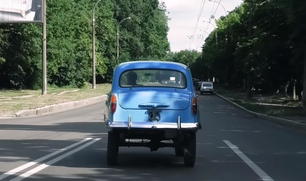 В конце пятидесятых, когда появился этот Москвич, все машины с колёсной формулой 4х4 имели в своей основе полноценную раму, так называемой «интегрированной» в то время в мире еще не придумали, а здесь – несущий кузов, как у обычной легковушки, только усиленный в местах, испытывавших повышенные нагрузки.