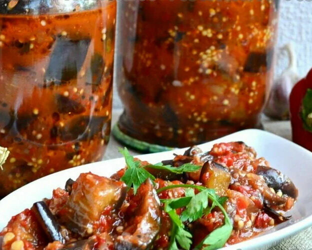 Хочу вам предложить заготовить на зиму остренькие, очень вкусные, с невероятным ароматом баклажаны по-грузински. Готовятся совершенно просто, а результат - отличный. Советую! Из данного количества продуктов получится 2 пол-литровые баночки баклажанов