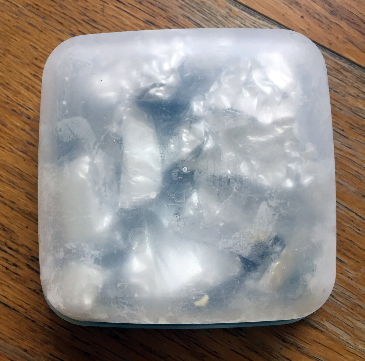 Уваренную таким образом жидкость разольем по каким-нибудь маленьким порционным формочкам, например, для льда. И заморозим.