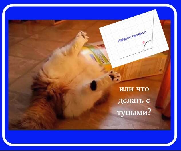 Вот дали вам (к примеру) такое задание: Что делать? Многие предложат сдаться. И это тоже выход. Если для вас это не вариант, действуем так: Фишка в том, что синусы, косинусы, тангенсы и котангенсы углов, которые в сумме дают 180 градусов — одинаковые! Но помним, что косинус и тангенс тупых углов — отрицательные (синус —нет, синус положительный).И тогда спокойно находим тангенс угла бетта. Но в ответе пишем его с минусом. Я надеюсь, что тангенс острого угла вы умеете находить? Если нет — то все, вам конец!(на самом деле — нет) Если не умеете находить тригонометрические функции острых углов -пишите в комментах, расскажу и про это.