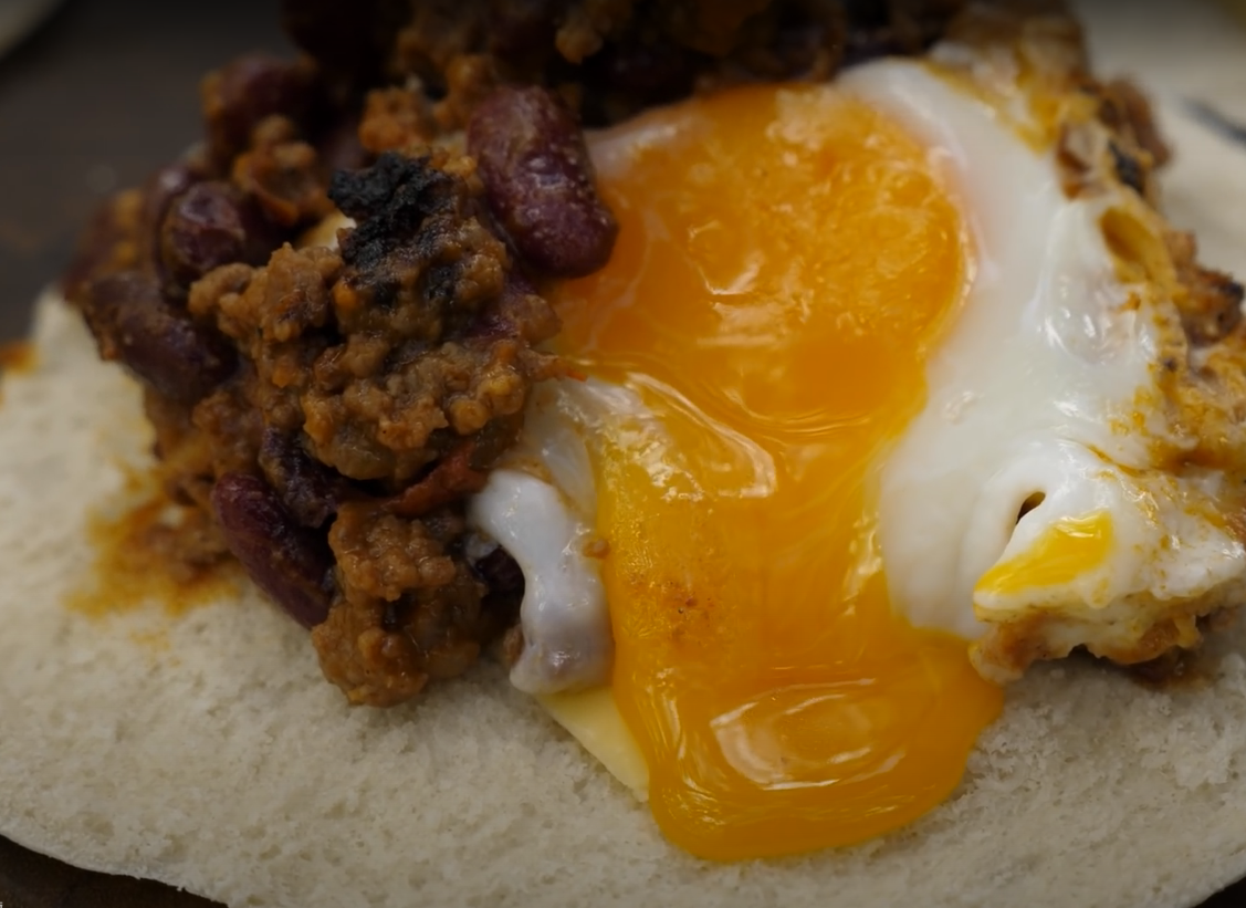 Ингредиенты: Как приготовить: 1. Нарезаем и подготавливаем все ингредиенты. 2. На горячую сковородку, с небольшим количеством масла, отправляем лук. Обжариваем до прозрачности. 3. К луку добавляем фарш и жарим 10-15 мин. 4. Далее добавляем грибы, солим и перчим. Добавляем немного кетчупа и острого соуса. 5. Добавляем фасоль и помидоры. Тушим до испарения влаги. 6. Делаем лунки и вбиваем яйца. 7. На питу кладем кусочек сыра. 8. Выкладываем яйца со смесью. Готово! Приятного аппетита!
