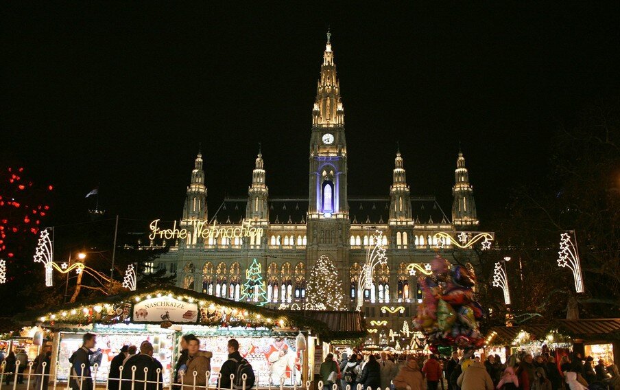 Рождество в Вене – волшебный праздник, сопровождающийся праздничным шопингом, соблазняющим ароматом традиционных лакомств, уличными хорами, исполняющие рождественские гимны. Особенности празднования Рождества в Вене За 4 недели до праздника австрийцы украшают свои дома венками из еловых веток, на которые устанавливают 4 свечи: в каждое воскресенье зажигается по 1 свече, т.е. в последнее предрождественское воскресенье будут гореть все 4 свечи. Рождество отмечается 24 декабря: на стол выставляются традиционные кушанья в виде гуся, карпа, колбасок. А еще к этому дню принято выпекать анисовые рожки, пончики с повидлом, звезды с корицей и другую выпечку. Если пожелаете зарезервировать столик в ресторане для рождественского ужина, сделать это лучше всего как минимум за 2 недели – вам предложат полакомиться копчеными колбасками, шницелем, яблочным штруделем и другими австрийскими яствами. Развлечения и праздничные мероприятия в Вене В канун Рождества рекомендуется побывать на мюзиклах, драма