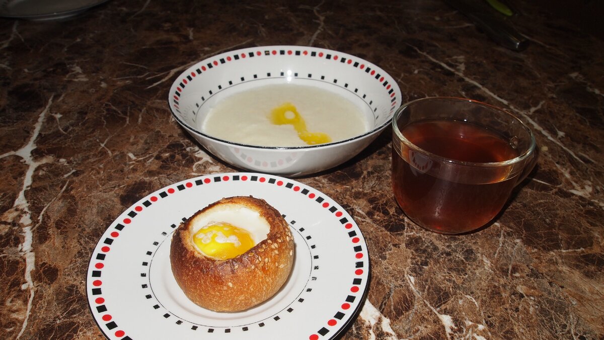 Как хорошо начинать день с вкусного и полезного завтрака! Горячий чай, каша и необычная булочка с горячей начинкой помогут вам начать свой день вкусно и полезно! Ингредиенты: Круглые булочки - 4шт Яйцо - 4шт Сыр -20гр Колбаса копченая - 4 ломтика Молоко - 220мл Соль - 0,5ч.л. Сахар - 2ч.л. Масло сливочное - 5гр Манная каша - 2ст.л. У булочек срезаем крышечку и вынимаем мякоть, смазываем изнутри молоком. Колбасу нарезаем полосками, укладываем на дно булочек; сыр натираем на крупной терке и выкладываем поверх колбасы. Сверху аккуратно разбиваем яйцо, посолим. Ставим в разогретую духовку на 10 минут. Готовим кашу: Стакан молока доводим до кипения, вводим мелкой струйкой манную кашу. Посолили немного кашу, добавили сахара и поварили на медленном огне 3-5 минут. Выкладываем кашу в тарелку, сверху добавляем масло. Такие булочки с кашей и горячим чаем поднимут вам настроение с утра, придадут сил и бодрости!!! Готовьте полезные и вкусные завтраки!!! Подписывайтесь на канал, приятного вам апп
