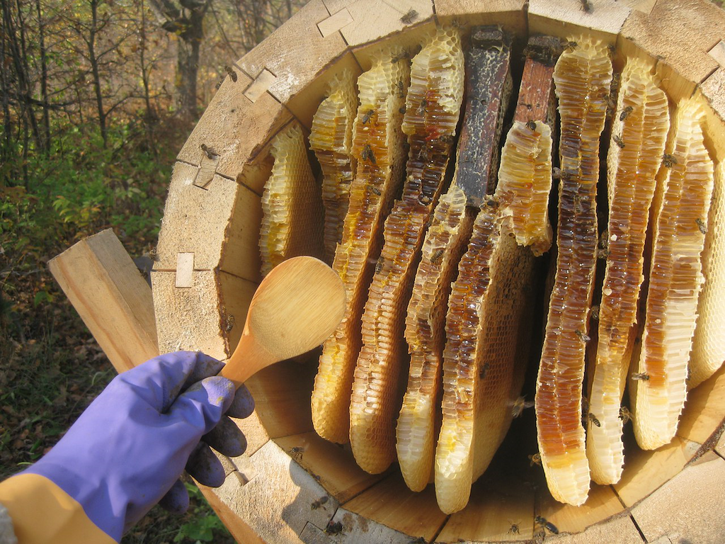 РШ: Это наиболее естественный, экологичный способ. При таком виде пчеловодства пчёлы делают свою работу «по собственному желанию», без вмешательства человека. Пчёлы селятся в колодах и живут по своим законам и распорядку, без подкормок и рамок, без проволоки, химических лекарств и иных манипуляций. Мёда они дают меньше, но по качеству он бесценен!