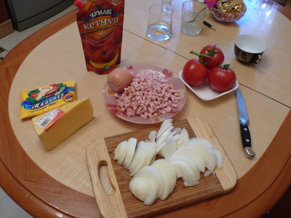 4 помидора нарезать на кружочки