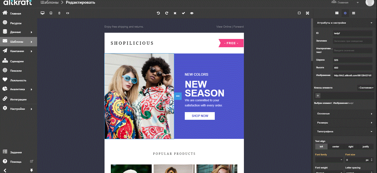 Делимся с вами обновлениями в платформе и рассказываем, как они работают и для чего нужны. Визуальный редактор В нашей платформе появился встроенный визуальный редактор. Теперь вы можете вносить изменения в уже существующие шаблоны за пару кликов. Для этого вам необязательно быть профессионалом верстки — необходимые инструменты и блоки находятся под рукой. Все возможности визуального редактора Altkraft Marketing: Связи между профилями Связи между профилями отражают взаимодействие между подписчиками, а также их ценность. Например, пользователи соцсети могут быть связаны с блогерами лайками, подписками друг на друга и репостами контента. Это знание помогает сегментировать одни профили по признаку других, с учетом их связи. Связи упрощают этот процесс и оптимизируют его. Отношения между подписчиками могут быть выражены свойствами связи — числовыми или логическими значениями. Они также могут быть добавлены в шаблон писем с использованием специальных переменных. Например, с их помощью вы