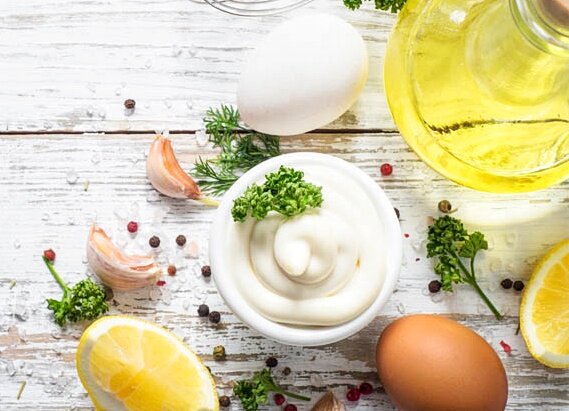 Хотите избежать консервантов и сахаров? Сделайте домашний майонез. Но надо быть очень осторожным и брать только свежие ингредиенты и быть уверенным в качестве яиц, а лучше заменить их яичным порошком. И добавить лимонной кислоты или лимона не только для улучшения вкуса, но и для создания среды, в которой развитие бактерий будет замедленно. И, конечно же, употребляйте сразу свежим.
