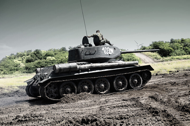 Рыжий (польск. „Rudy“) — танк Т-34-85, на котором сражались главные герои романа Януша Пшимановского «Четыре танкиста и собака» и одноименного телесериала. Входил в состав 1-й Варшавской танковой бригады имени героев Вестерплатте 1-й армии Войска Польского с бортовым номером 102. Танк был назван экипажем в честь рыжеволосой девушки Маруси «Огонёк» (в исполнении Полы Раксы), советской медицинской сестры и невесты Янека Коса. Первый танк, полученный экипажем в пятой серии («Рыжий, мёд и награды»), был подбит. В шестнадцатой серии был получен новый танк, который унаследовал название «Рыжий» и номер. В книге герои изначально сражались на танке модели Т-34-76, в фильме в обоих случаях — Т-34-85. Во время съемок сериала кинематографисты использовали три танка. Два танка из Жанагя впоследствии служили в качестве мишеней и были отправлены на слом. Вроцлавский танк находится в Музее моторизации и техники в деревне Отрембусы. Съемки внутри танка в первой части сериала проводили в макете, построе