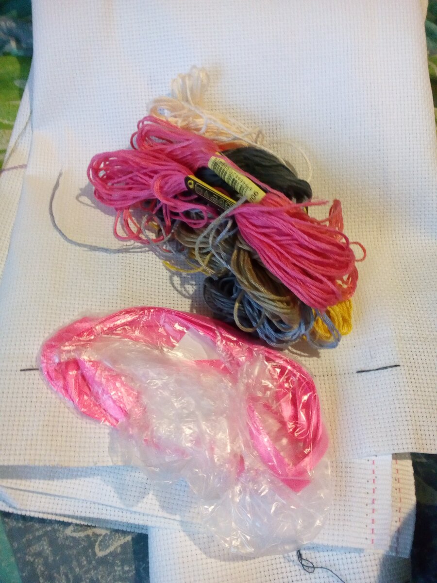 Нитки для новой работы подобрала согласно новой схеме. А еще купила ленточку.
