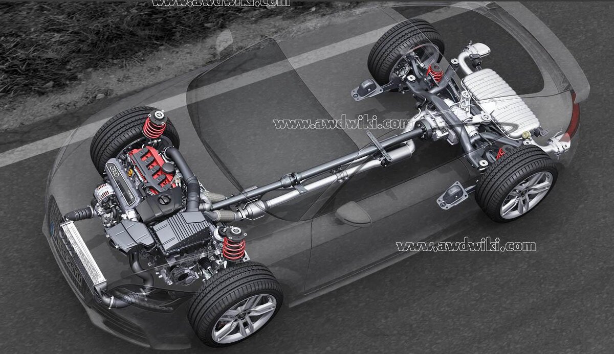 Несмотря на различия в конструкции систем конкретных автомобилей, система quattro включает следующие традиционные элементы полноприводной трансмиссии: коробку передач, раздаточную коробка, карданную передачу, главную передачу и межколесный дифференциал на каждой оси.