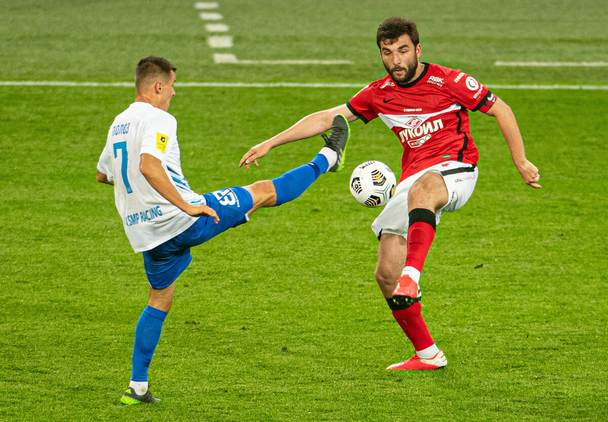 Московский «Спартак» дома сыграл вничью 2:2 с «Сочи» в матче 1-го тура РПЛ сезона-2020/21. К 10-й минуте хозяева повели 2:0 после голов Александра Соболева и Джордана Ларссона. В составе сочинцев отличились Дмитрий Полоз на 15-й минуте и Кристиан Нобоа на 90-й, оба игрока реализовали пенальти, назначение которых вызвало большие споры. Составы команд: «Спартак» (Москва): Максименко, Джикия, Жиго, Маслов (Гапонов, 53), Айртон, Зобнин, Бакаев (Умяров, 77), Глушенков (Понсе, 54), Крал, Соболев, Ларссон. «Сочи»: Джанаев, Терехов, Маргасов, Цаллагов, Заика, Мевля, Новосельцев (Набиуллин, 72), Миладинович, Бурмистров (Немченко, 65), Нобоа, Полоз (А.Заболотный, 84). Голы: Соболев, 8 (1:0). Ларссон, 10 (2:0). Полоз, 15 — с пенальти (2:1). Нобоа, 90 — с пенальти (2:2). Пенальти в ворота «Спартака» назначен ошибочно. Казарцев отстранен от работы — Что теперь будет с Казарцевым? — Арбитр Казарцев отстранен от судейства. В отношении видеоассистента Еськова проведут разбирательство (по да
