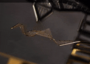 Американские инженеры создали миниатюрного робота-журавля на основе разработанной ими технологии микрооригами с электротермическими актуаторами. Построенные по такой технологии системы показывают высокую скорость работы, слабо зависят от внешних температурных условий и программируемо трансформируются, сгибаясь из плоских листов в сложные трехмерные конструкции.
