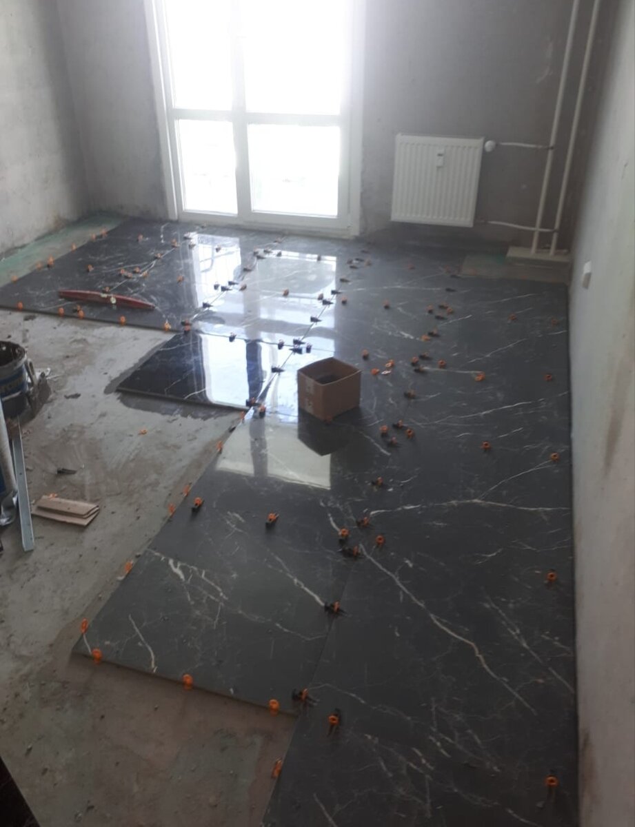 Здравствуйте! Сегодня я бы хотел поговорить о выравнивании пола при помощи СВП. Это инновационная схема выравнивания плиток при укладке на стены и пол, которая пришла к нам с запада. Перед тем, как начать выкладывать плитку мы загрунтовали пол бетоноконтактом. Затем мы начали наносить на пол и на плитку клей(плиточный). Выкладываем плитку, вставляем СВП и зажимаем зажимами. Получаются идеальные швы и ровная плоскость. После того, как мы вставим СВП мы получим такую картину: Спасибо за прочтение этой статьи. Если вы дадите оценку в виде лайка , дизлайка или комментария, то я смогу делиться с вами советами, которые помогут каждому решившему сделать ремонт своими руками. А теперь... Спустя 2 дня работы мы получим вот такой результат: