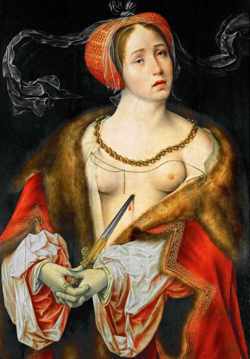 Смерть самой красивой женщины античности. Йос ван Клеве "Самоубийство Лукреции", 1520-1525.