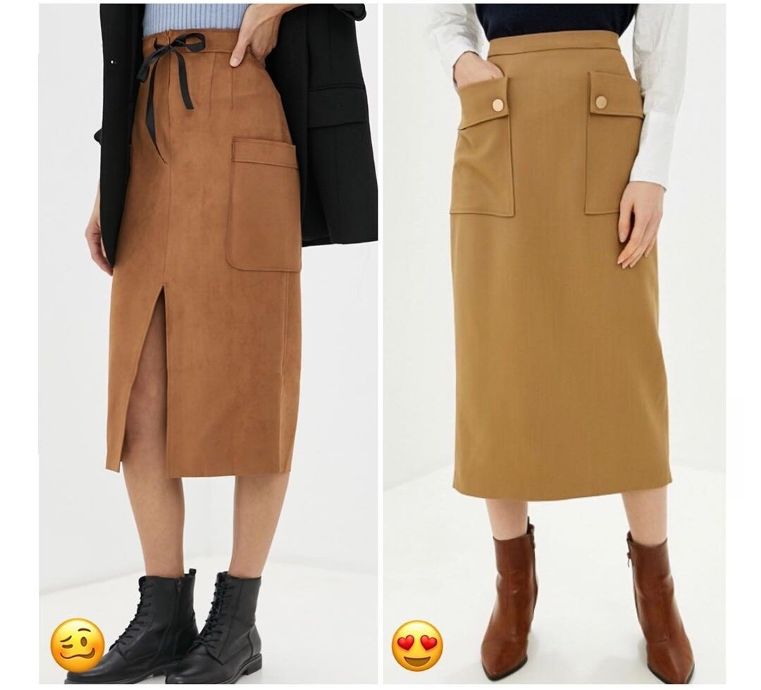 Найти в магазине идеальную юбку под себя - это большая удача. Она должна не только хорошо сесть на фигуру, подчеркнув индивидуальные особенности и спрятав недостатки, но еще и быть уместной в вашем стиле и гардеробе. Чтобы не пылилась в шкафу без дела и хорошо работала в повседневной жизни, а не только по праздникам. Разберем некоторые неочевидные, но важные нюансы, которые нужно учитывать при выборе юбки. Если вам некогда следить за модными трендами, то подписывайтесь на мой канал, я расскажу всё, что важно знать о современной моде, чтобы выработать свой стиль! Карманы на юбке - это интересная деталь, но достаточно коварная. Если они расположены неудачно, то такая юбка расширит бедра, да еще и визуально опустит и сплющит ягодицы. Расположение и объем карманов очень важны. Такой элемент декора всегда будет добавлять объема, поэтому если вы его избегаете, имеет смысл вообще не брать юбку с накладными карманами. ✴✴✴ Часто в продаже можно увидеть юбки с идущим в комплекте текстильным пояс