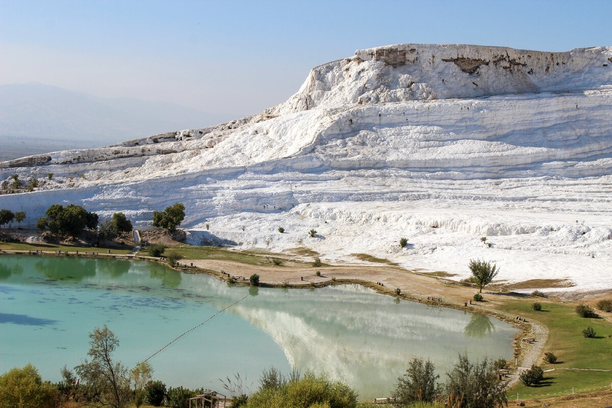 Многие, я думаю, уже наслышаны об этом удивительном месте в Турции и не раз видели в сети фотографии этих уникальных кальциевых террас, сверкающих на солнце и ослепляющих своей белизной. На первый взгляд, кажется, что это снег, а люди ходят по нему в купальниках и совершенно не мерзнут. На самом деле – это не снежные вершины и не горы соли… Белый цвет придают вымытые водой известковые отложения.
