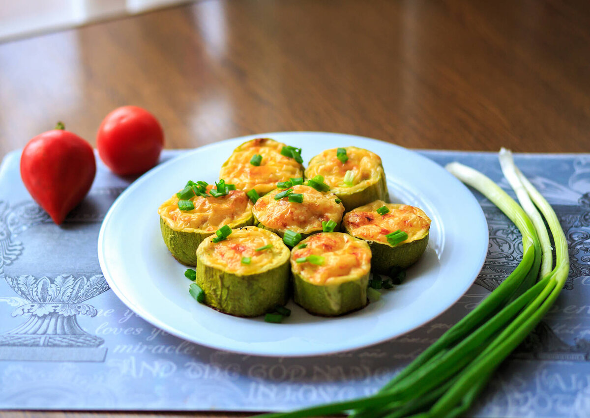 "Бочонки" из кабачков с фаршем. Сытное и простое блюдо, которое к тому же эффектно выглядит на столе. Ингредиенты 3 небольших кабачка; подсолнечное масло для жарки; 1 луковица; 1 морковь; 500 г фарша; 1 пучок петрушки; 1 пучок укропа; соль и чёрный молотый перец — по вкусу; 50 г твёрдого сыра. Приготовление Кабачки помойте и нарежьте на куски высотой 3–4 см. Чем больше диаметр овоща, тем ниже должны быть «бочонки». Ложкой или ножом извлеките мякоть, оставляя «дно». Мякоть не выбрасывайте. Обжарьте на подсолнечном масле лук и морковь. В конце посолите, поперчите и добавьте мякоть из кабачков и фарш. Лучше — говяжий либо микс из свинины и курицы или говядины. Чисто со свиным будет слишком жирно. Когда фарш подрумянится, добавьте рубленую зелень.Наполните фаршем кабачки. Выложите на противень, застеленный пергаментом. Посыпьте каждый «бочонок» тёртым сыром и выпекайте 25–30 минут в духовке, разогретой до 180 °С. Кабачки, фаршированные творогом. Вкус пряный и одновременно нежный, а по те