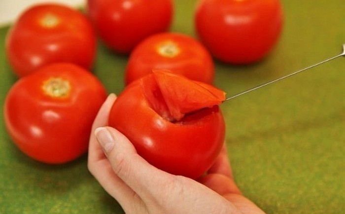 Такие помидоры можно делать круглый год вне зависимости от сезона. Хочется отметить - этот рецепт не для длительного консервирования. По крайней мере, в закрутке не был использован. Алгоритм рецепта прост - три дня на засолку, неделя на съедение, следующая засолка. В холодильнике могут храниться месяц, но сьедаются значительно быстрее, причём и рассол тоже вкусен. Ингредиенты: Помидоры - 3 кг Сельдерей черешковый - 1 пучок Чеснок (головка)-1 шт Укроп -1 пучок Соль на литр воды - 2 ст.л Сахар на литр воды - 2 ст.л Приготовление: Подготавливаем сельдерей, укроп и чеснок. У сельдерея отрезаем верхушки с зеленью, а корень нарезаем на кусочки длиной примерно 8-10 см. Укроп можно закладывать целиком, можно порезать. Готовим помидоры, для того, чтобы они просолились за 3 дня, необходимо у каждого вырезать место, где крепилась плодоножка. Это не сложно и не занимает много времени. Вырезаем аккуратно, чтобы отверстие не было слишком большим, иначе при заливке кипятком плод может расползтись.