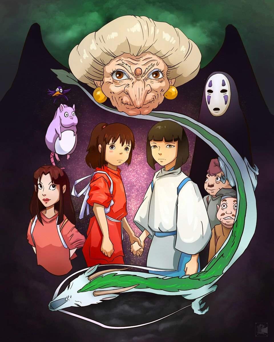 В мультфильме «Унесенные призраками» есть множество странных персонажей. Чтобы аниматорам было проще разобраться с тем, как они двигаются, Миядзаки советовал им черпать вдохновение из мира животных. Так, например, моторика раненого дракона Хаку состоит из движений сразу трех животных: он ползет по стене, как геккон, затем падает на землю, как змея, и сопротивляется Тихиро, как собака.
