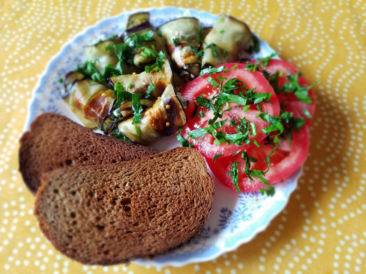 На обед, в качестве гарнира, я решила приготовить рулетики из баклажан. Никогда раньше сама не делала. Купив чеснок и зелень, отправилась домой.