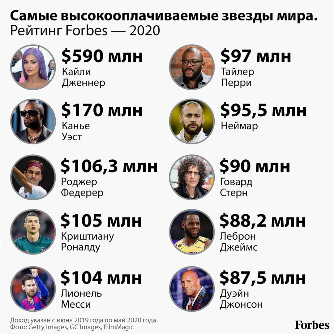 Самые высокооплачиваемые звезды мира