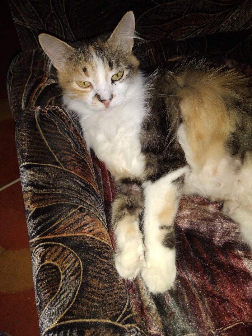 Немного информации о трехцветке из поста: Все позади: уличная кошечка вернулась на передержку! Через пару дней ей снимать швы и можно выпускать на прежнее место обитания.