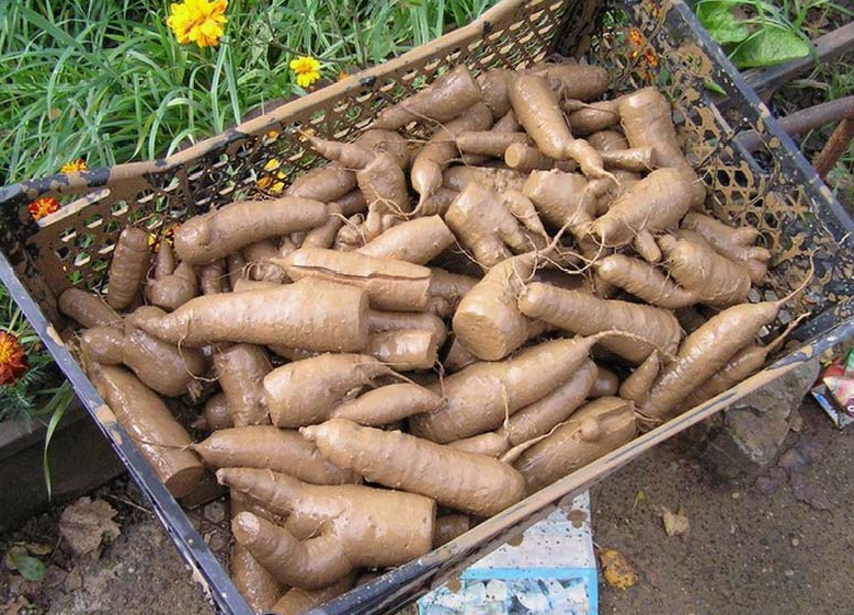 · Корнеплоды в глине можно убрать в ящике или в корзину.