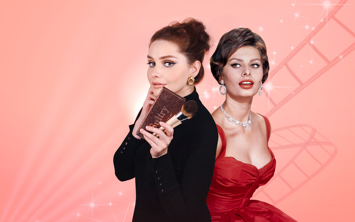 В макиже лица Софи Лорен предпочитает тёплые оттенки и почти всегда использует бронзовую пудру, которая придаёт лицу отдохнувший вид и подчеркивает его скульптуру. А еще она очень любит румяна: «Когда положена основа, брови, ресницы и глаза умело накрашены и подведены, наступает очередь алого цвета. Место, где ему надлежит быть, — губы и щеки». Впрочем, на большинстве фото цвет её румян больше похож на персиковый :)
