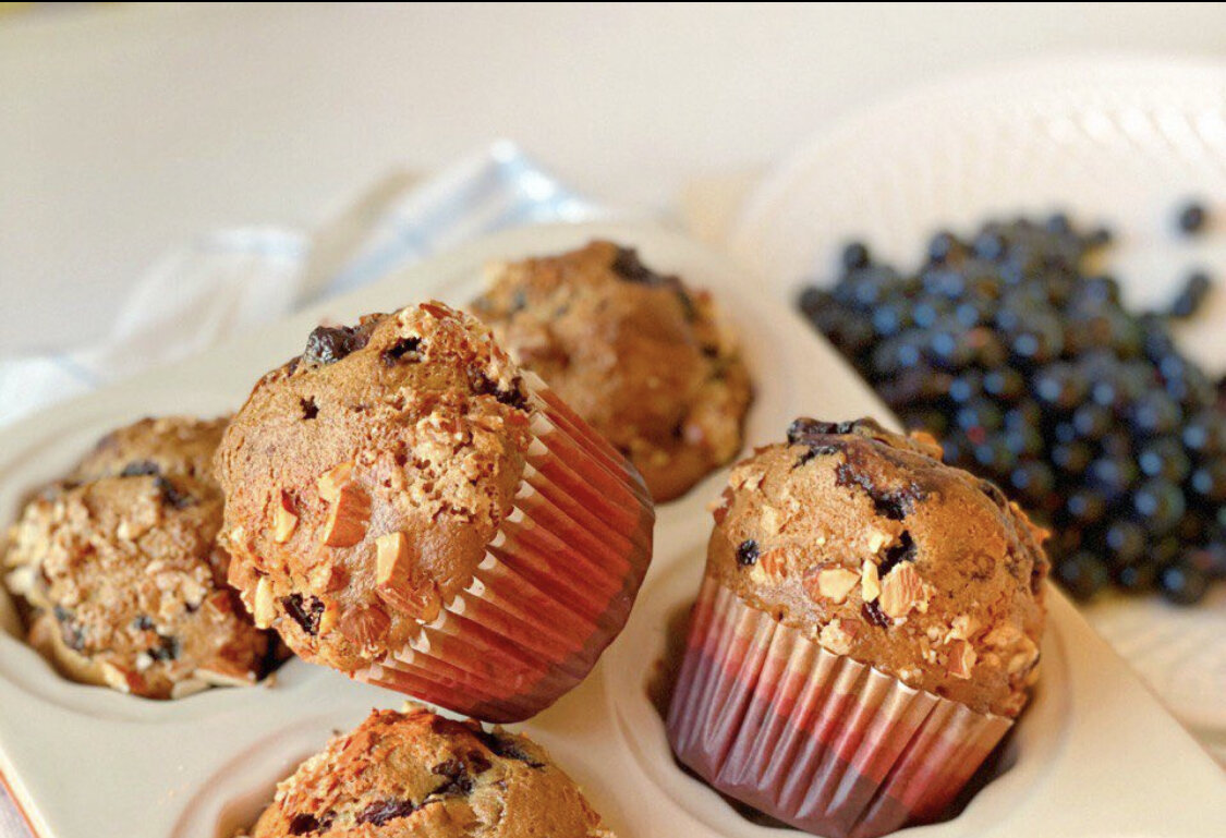 Черничные маффины на цельнозерновой муке Ингредиенты: Тесто: ▫️мука цельнозерновая — 110 г ▫️разрыхлитель — ½ ч. л. ▫️соль — ¼ ч. л. ▫️сода — ¼ ч. л. ▫️растительное масло — 57 мл ▫️сахар — 75 г ▫️яйца куриные — 1 шт. ▫️йогурт — 60 г ▫️молоко — 30 мл ▫️черника — 125 г ▫️орехи — 40 г Способ приготовления: 1. Масло и сахар взбить до гладкого состояния. 2. Добавить яйцо, хорошо взбить. 3. Добавить йогурт и ваниль. Также перемешать на средней скорости. 4. Смешать все сухие ингредиенты и добавить к смеси. 5. Добавить молоко и хорошо взбить. 6. Далее добавить чернику и аккуратно перемешать. 7. Разложить тесто в формы ложкой, заполнив их до самого верха (!). Сверху выложить порубленные любимые орехи, смешанные с сахаром. Выпекать 5 минут при 220°C, далее снизить до 175°C, выпекать еще 18–20 минут. 8. Приятного аппетита!