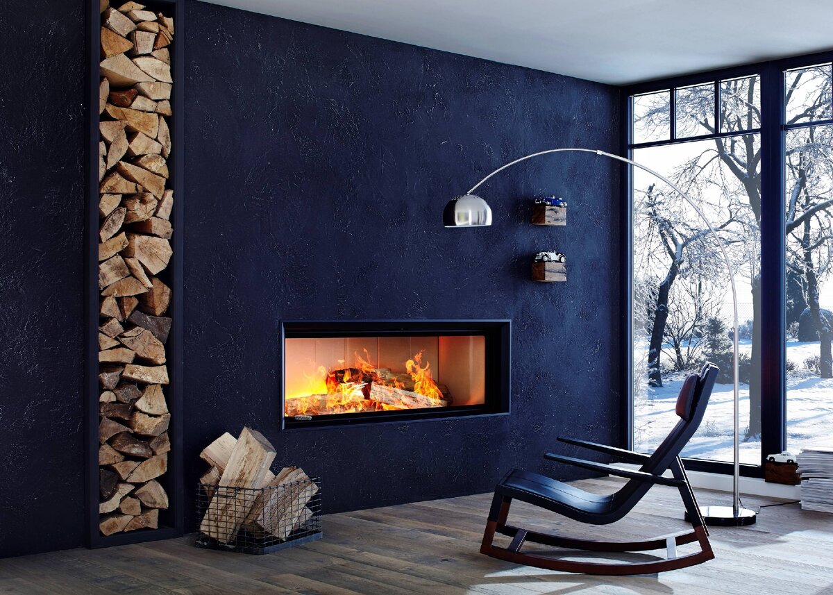 Для просторного помещения камин может стать элементом зонирования. Классический камин с дымоходом не обязательно делать частью одной из стен. Разместите его в центре помещения и оформите в тон общего стиля интерьера.