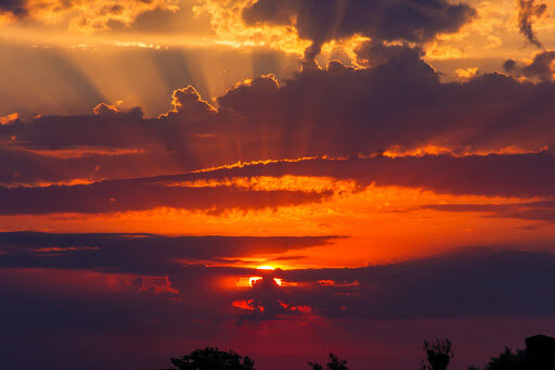 Незабываемые багряные закаты, теплые переливающиеся краски — трудно представить себе более впечатляющую картину. Но иногда, глядя на все это, мы говорим: «Какое багровое солнце!» В действительности же мы знаем, что Солнце само не стало красным и совсем не изменилось. Просто оно выглядит так в определенное время суток. В это же самое время для человека, живущего несколько тысяч километров западнее, Солнце совсем не выглядит багровым или красным. На цвет заката влияет слой воздуха, сквозь который проходит луч Солнца. Чем ниже Солнце, тем больший слой атмосферы должен преодолеть солнечный свет. Но сначала давайте вспомним, что солнечный свет является сочетанием всех цветов. Обычно такое сочетание цветов воспринимается нами как белый цвет. Но в атмосфере присутствуют частички пыли, водяные пары и другие примеси. Когда луч света проходит сквозь атмосферу, различные цвета рассеиваются этими частичками. В атмосфере фиолетовый, синий и зеленый цвета лучше рассеиваются, чем красный и желтый. Ко