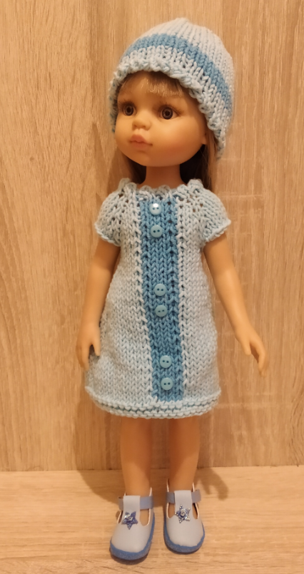 МК вяжем костюм (платье и шапочка) спицами для Паолы Рейна 32 см.