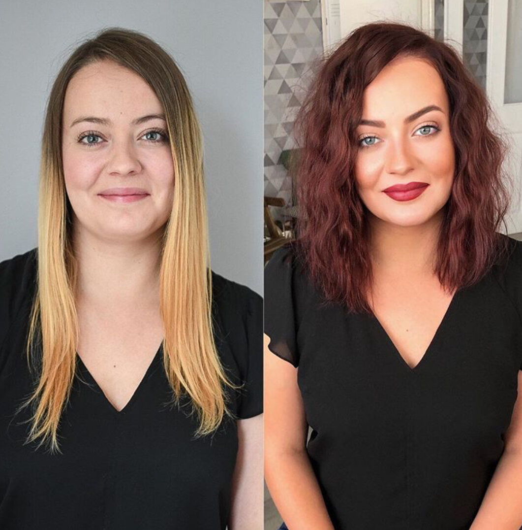 Длина, оттенок волос, укладка — только взгляните, как они трансформируют образ! Новый более свежий и светлый оттенок, удачная стрижка с удлиненной челкой великолепно подчеркнули овал лица! Вау-эффект: не всегда длина играет на руку, иногда стоит отказаться от привычной прически, которую вы носите годами, чтобы преобразить внешность до неузнаваемости! Естественный оттенок, густая косая челка, более короткая стрижка — девушка стала выглядеть намного свежее и моложе! Боб-каре сделало девушку более элегантной, стрижка великолепно подчеркнула овал лица, придав чертам утонченность. Минус 20 сантиментров — плюс к более стильному и актуальному образу! Настоящее преображение: стрижка, правильное окрашивание и укладка сделали волосы девушки
