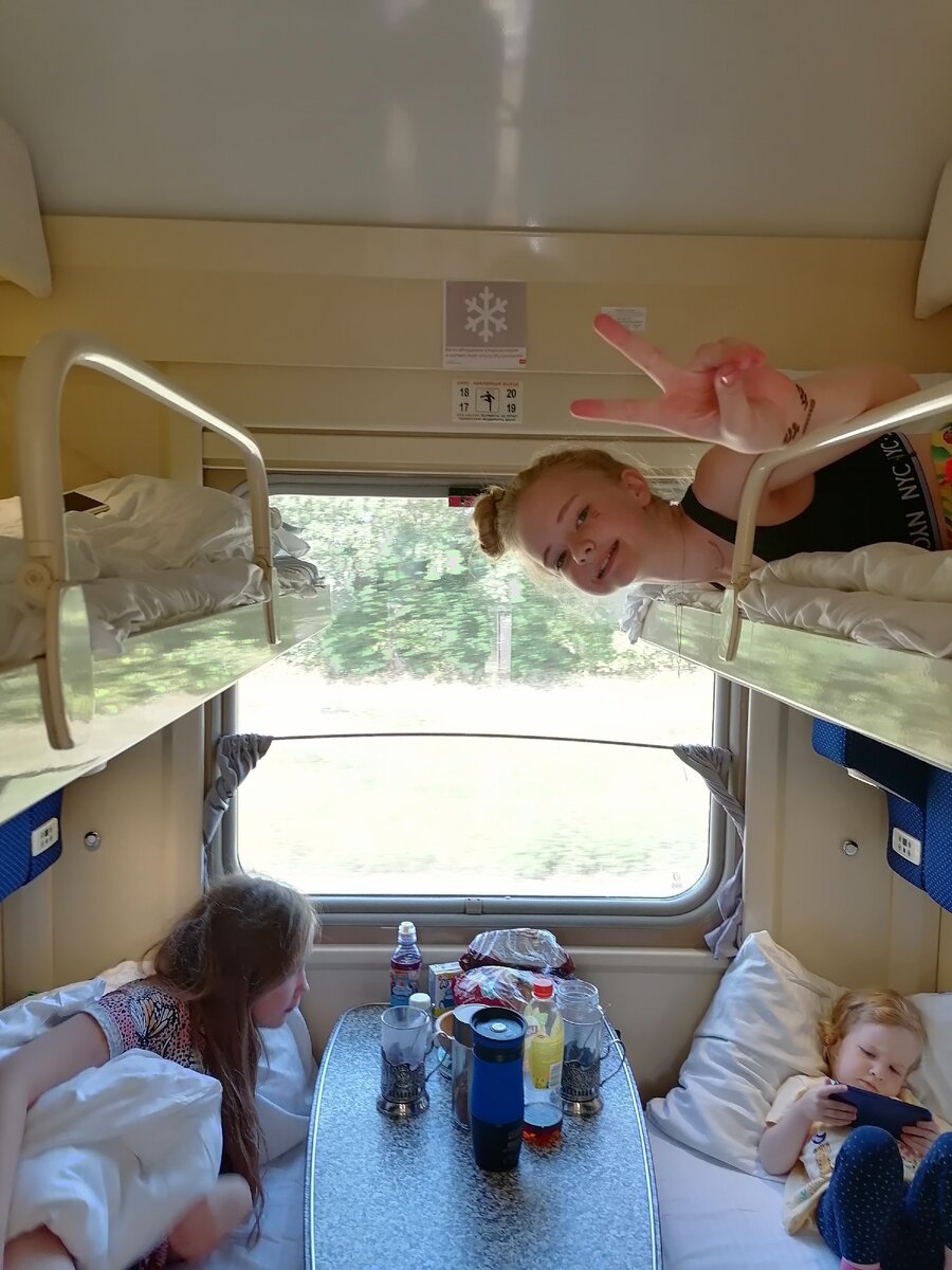 Для нас поездка в поезде это начало нашего путешествия. Дети любят лазить по кроваткам, играть, наблюдать в окно красивые пейзажи.