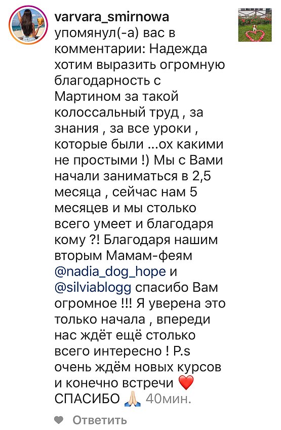 - Мы тренируем внимание и концентрацию. Собака учится долго и сконцентрировано работать, не отвлекаясь. Это не просто, но если не обучить этому, то дальнейшая дрессировка просто не возможна, да пёс будет знать ряд команд, но выполнять их от случая к случаю. Например, вы позовёте, он вроде побежит, но что то отвлечёт и уже не бежит к вам. Почему? Так ведь не научен работать долго и концентрироваться на одном задании.