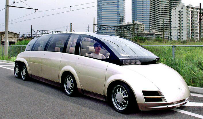 Концепт-кары бывают разные. Бывают более приземленные – хоть сейчас запускай в серию. Бывает чистый полет фантазии, который нереально воплотить в жизнь. Бывают концепты с очень глубокой инженерной проработкой и заделом на будущее. Но, всё же, не в последнюю очередь задача концепт-кара – привлечь внимание публики, удивить, ошеломить, показать технический и дизайнерский потенциал компании. Что касается концепта I.DE.A-KAZ, который был явлен миру в марте 2001 года на Женевском автосалоне, то он определенно является одним из самых безбашенных и смелых проектов. Оригинальности ему было не занимать! Посудите сами. Внешне машина не была похожа ни на что. Её можно назвать одновременно и седаном, и лимузином, и минивэном. Длинная обтекаемая каракатица больше всего напоминает гусеницу-сороконожку, чему способствуют и 4 пары колес, итого – 8 колес! Передняя ось располагается в привычном месте, вторая – за передним рядом сидений, две последних пары колес сближены и находятся в задней част