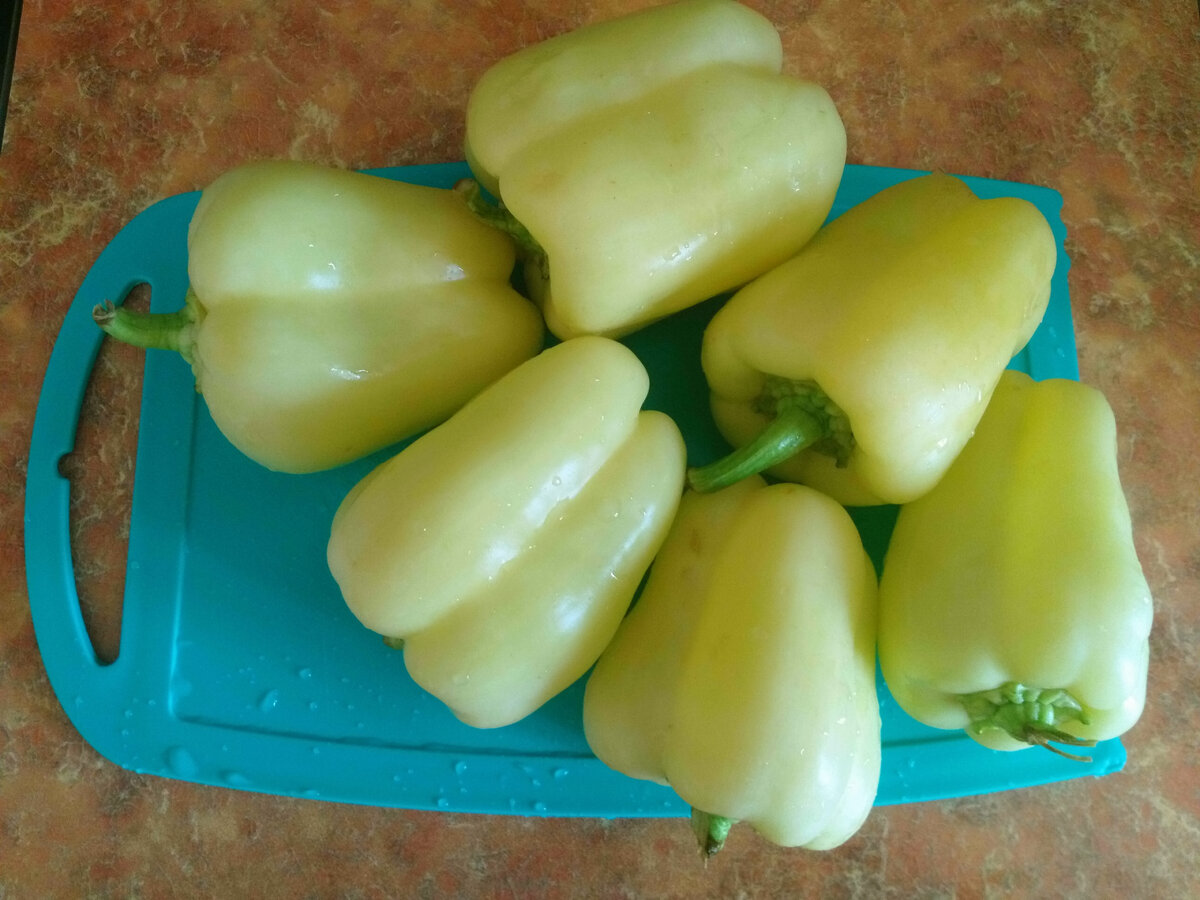 Перцы промыть, затем аккуратно удалить мякоть и семена. Наполнить фаршем, стараясь максимально не повредить внешний вид овоща. Всегда стоит брать перцы на один больше, чем необходимо в рецепте. В случае неосторожности, под рукой всегда будет замена.
