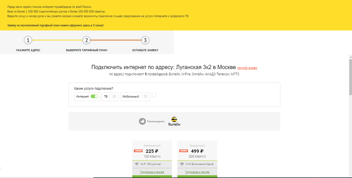 Почти каждый дом на земле подключен к всемирной сети интернет. За частую подключившись к одному тарифу вы остаетесь на нем годами, даже не задумываясь о том, что ваш тариф уже давно устарел, скорость и качества соединения не соответствуют современным, а цена остается прежней и не самой низкой. Самое печальное, что ваш оператор вам об этом не скажет. Как же проверить актуальность вашего тарифа при этом не посещать кучу сайтов операторов в поиске выгодного предложения? Есть один способ, как быстро найти и подключить выгодный тариф. Можете считать это рекламой (хоть это и не так), но черт возьми это удобный и бесплатный способ, который поможет вам сэкономить ваши деньги и время. И так, что для этого нужно сделать? Все просто. Переходим на страницу проверки доступных подключений и вводим адрес проживания (Город, улица и дом) и нажимаем "найти провайдера". Программа определит наличие доступных для подключения провайдеров и выдаст наиболее привлекательные тарифы по каждому из них. Оста