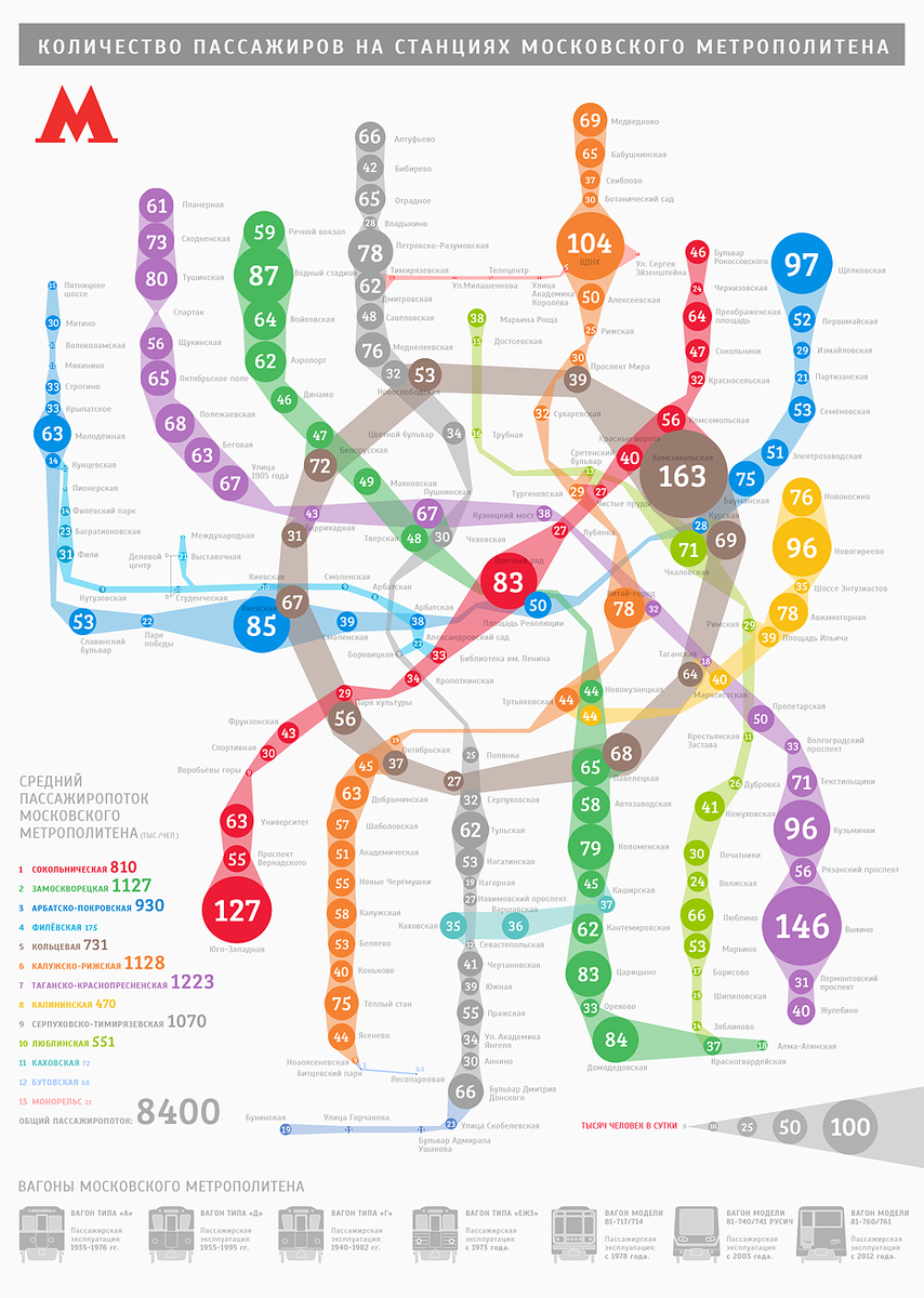 Москва Москва с населением численностью 12 миллионов человек славится пробками и сильной загруженностью некоторых станций метро. Станция метро Выхино даже дала имя «эффекту Выхино» — так называют ситуацию, когда на первых станциях метрополитена в каждый вагон заходит столько человек, что на последующих станциях никто не может попасть в поезд. Конечные станции метро ставят рекорды по пассажиропотоку и это неудивительно, ведь на них зачастую заканчиваются пригородные маршруты наземного транспорта. Из-за пробок жители столицы тратят на поездку на 50% больше времени, чем если бы они ехали по свободным дорогам. Метро Поездка из спального района до центра обойдется в 40-60 минут. Прибавляем по 10-20 минут от входной двери дома до входных турникетов и столько же с момента выхода из подземки до работы. Получаем, в среднем, от 60 до 100 минут на дорогу, то есть более 1 часа. Наземный транспорт Время поездок в общественном транспорте по выбранным маршрутам начинается от 90 минут. Прибавьте врем